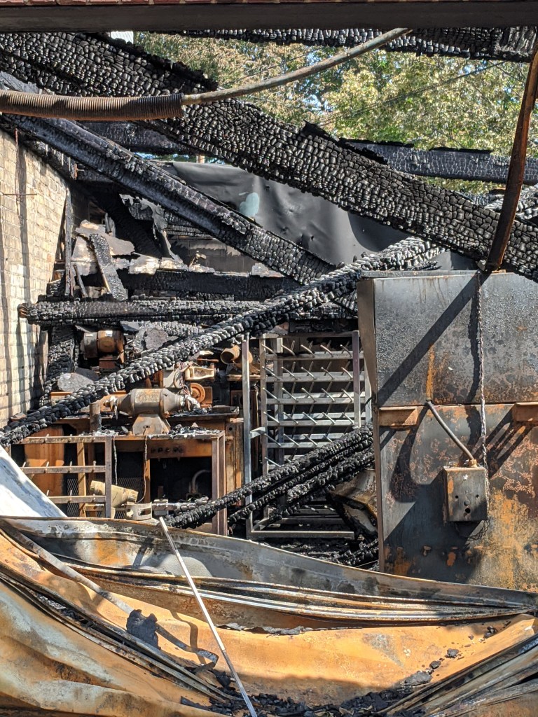 放火で全焼しなかった建物も、このように外装を破壊されたり落書きをされています。