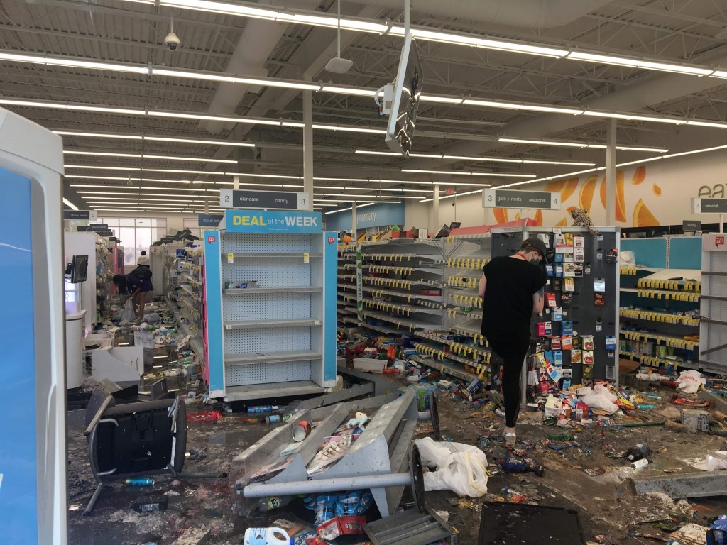 46番通り駅の近くにある、ウォルグリーンというドラッグストアです。店内は完全に略奪・破壊されています。